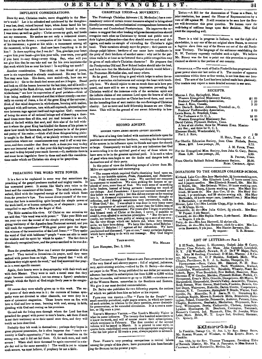 OBERLIN EVANGELIST